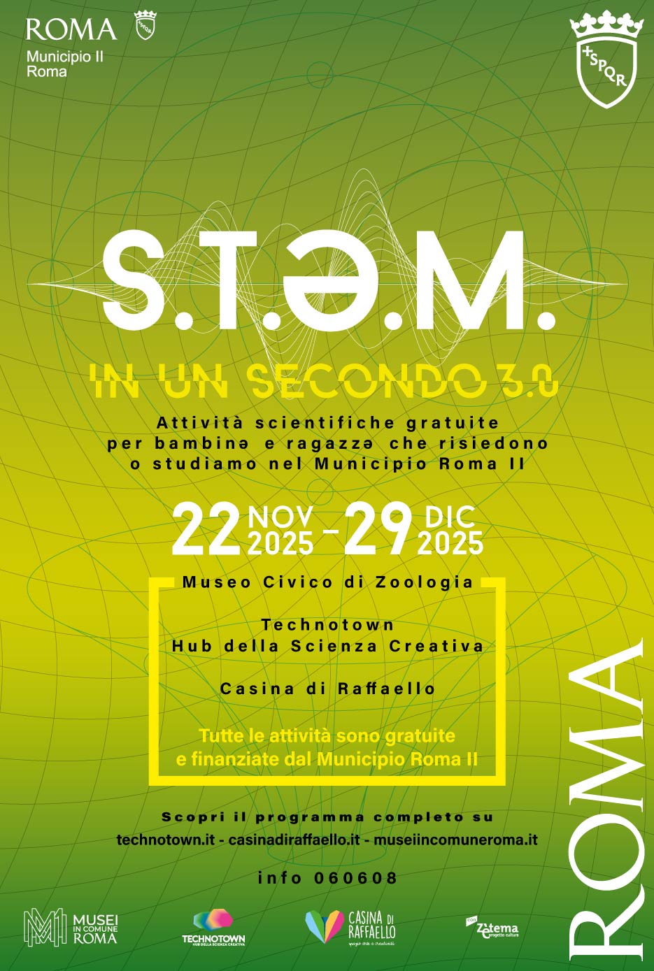 Dal 22 novembre al 29 dicembre 2025 tutti i bambini e i ragazzi, dai 3 ai 14 anni, residenti nel Municipio Roma II o che frequentano le scuole presenti sul suo territorio, potranno vivere una fantastica esperienza condivisa a tema scientifico, partecipando alle tante iniziative gratuite pensate appositamente per loro e che si svolgeranno al Museo Civico di Zoologia, a Technotown-hub della scienza creativa in Villa Torlonia e alla Casina di Raffaello in Villa Borghese.